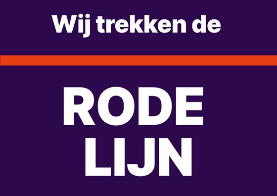 Maandag ochtend, half negen sta ik hier, al een paar weken lang, op de Neude in Utrecht langs het fietspad. Samen met een paar anderen houd ik een langgerekt rood spandoek vast. 'De rode lijn is overschreden'. |