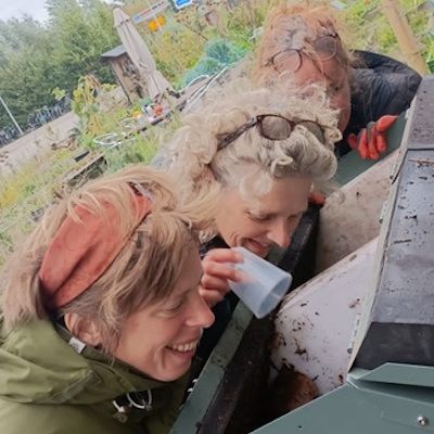 Misschien wel omdat ik een wonderlijk transformatieproces met mijn eigen zintuigen waarneem. Ik ondervind hoe onwelriekend afval langzaam transformeert in vruchtbare compost met een fris bosgeurtje. Die weer de benodigde voeding geeft aan de moestuin voor groei van nieuwe planten. De schoonheid van deze natuurlijke kringloop raakt mij. In een tijd van klimaatstress en ecologische achteruitgang stelt het me gerust. De aarde zorgt zelf voor een prachtige herstellende cyclus, als we de natuur haar gang laten gaan en soms een handje helpen.