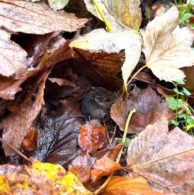Verder geen knaag- of vraatsporen. Een bescheiden muis? Later, toen het koud werd, wilde ik mijn warme winterlaarzen aantrekken – maar ontdekte dat één van de laarzen in gebruik was als voorraadkamer. Volgestopt met keiharde oude kikkererwten die ik gebruikt had om taartbodems blind te bakken. Helemaal uit de keuken naar de gang vervoerd. Zouden de muizen daarvan geleefd hebben? Of morsen wij zoveel kruimels op de grond dat een muis of muizenfamilie daarvan kan leven?