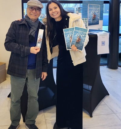 Op de foto sta ik met de schrijver van het boek bij een boekpromotie op een bijeenkomst van de Vietnamese gemeenschap in Nederland. Ik wilde dat meer Vietnamezen zouden weten dat het boek bestaat en kan helpen meer begrip te creëren voor wat er allemaal is gebeurd en vooral wat het met de mensen heeft gedaan. Wellicht wordt de relatie tussen 1e, 2e en 3e generatie vluchtelingen hechter doordat ze wezenlijke gebeurtenissen en emoties kunnen delen. Het zit niet in de Vietnamese cultuur om negatieve/traumatische gebeurtenissen te vertellen/“op te dringen” aan anderen; over gevoelens praten is moeilijk, maar wellicht kan het boek een opening bieden. Ik vond het mooi om te zien dat er veel belangstelling was van jongere generaties die het net als ik niet actief hebben meegemaakt. Ze willen wel meer weten maar hoe begin je erover? “Mijn ouders, mijn oma praten er nooit over” hoorde ik die middag vaak.